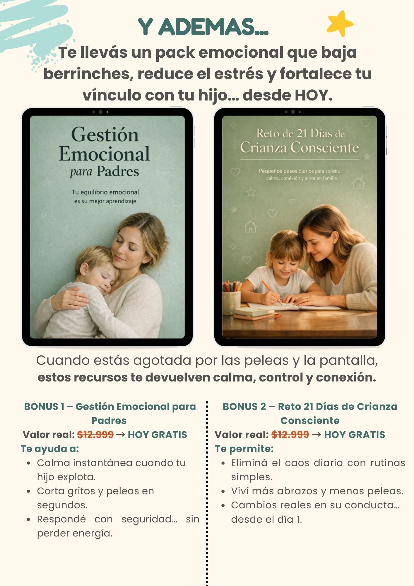 Incluye guía 365 Actividades sin pantallas + 7 bonus esenciales con acceso inmediato.