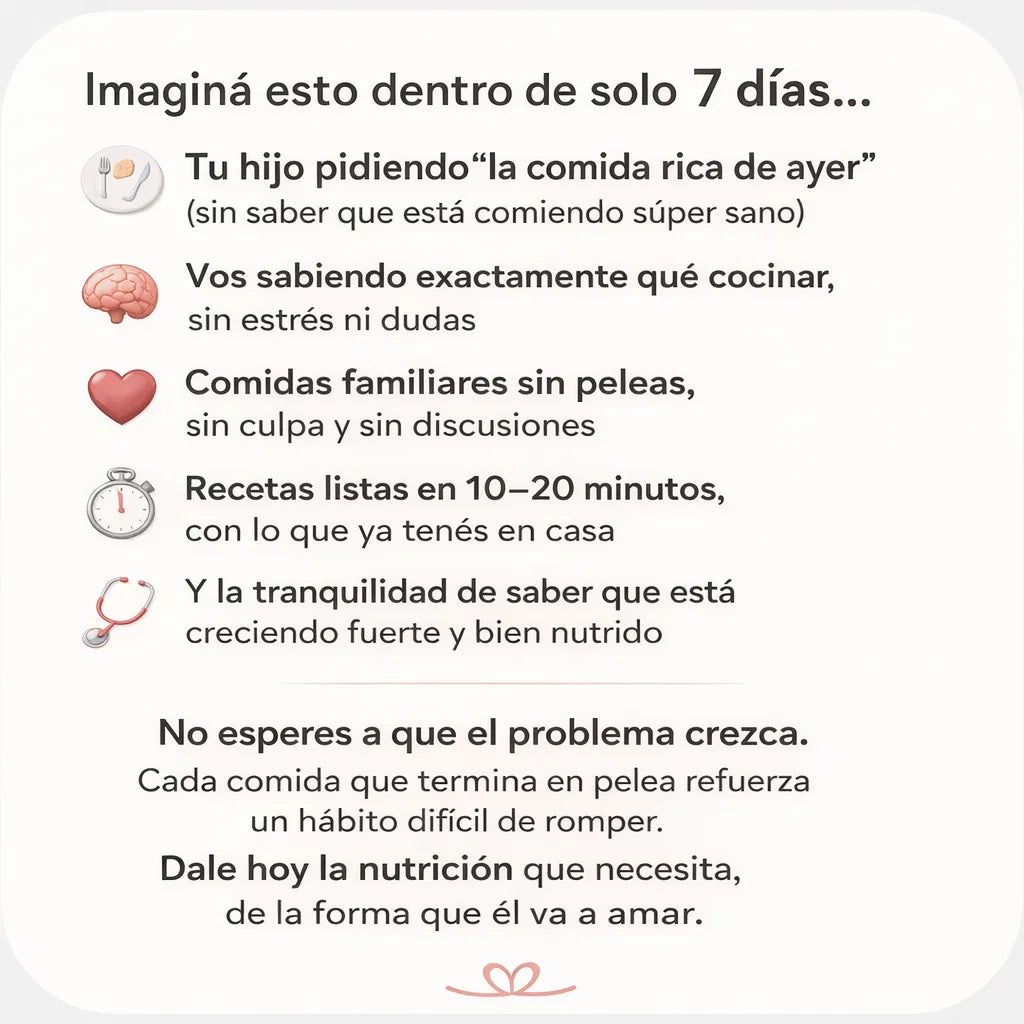 Es el combo ideal para trabajar alimentación + juego + calma en casa: comen rico y saludable, y al mismo tiempo recuperan el juego, la creatividad y la conexión real.